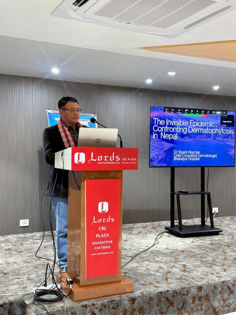 A program was hosted for the topic “The invisible Epidemic: Confronting dermatophytosis in Nepal (NEXTODERM), My Experience of Omalizumab in Chronic Urticaria, and Misuse of Steroids: A growing concern” where Dr. Achyut Pokharel was Moderator, Prof. Dr. Mahesh Mathur was Chairperson and Dr. Sashi Hirachan, Dr. Manisha Singh, and Dr. Vikash Poudel were the speakers.